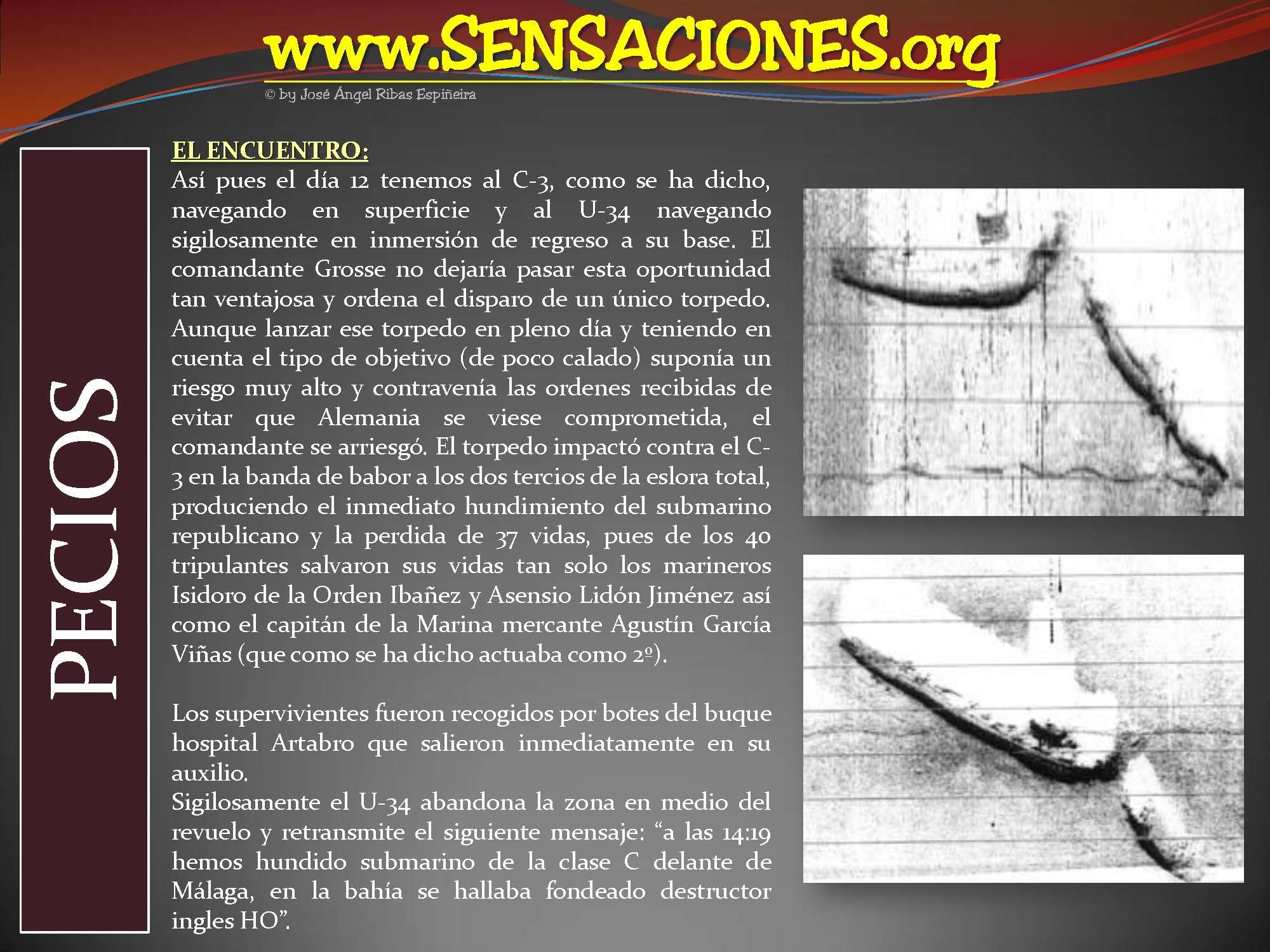 Artículo publicado en el número 19 de Abril de 2009 de la revista "SENSACIONES" sobre el Submarino C3. www.sensaciones.org Agradecemos sinceramente a la direccion de esta revista la colaboracion prestada. |Article published in Issue 19 April 2009 in the journal "SENSACIONES" about the submarine C3. www.sensaciones.org We sincerely thank the leadership of this journal for their collaboration.