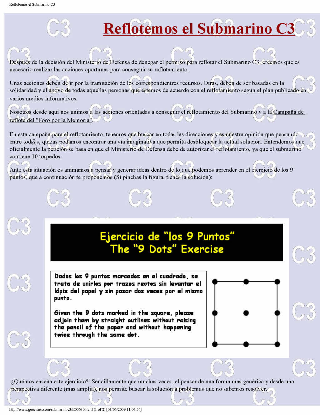 Otra Página del Submarino C3. Another Page dedicated to Submarine C3. Trascripción del artículo publicado en la REVISTA GENERAL DE MARINA de Junio de 1996 - Tomo 230