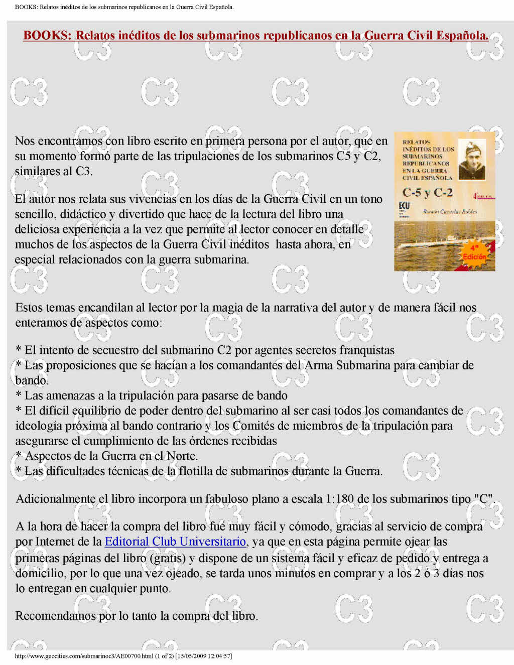 Otra Página del Submarino C3. Another Page dedicated to Submarine C3. Trascripción del artículo publicado en la REVISTA GENERAL DE MARINA de Junio de 1996 - Tomo 230