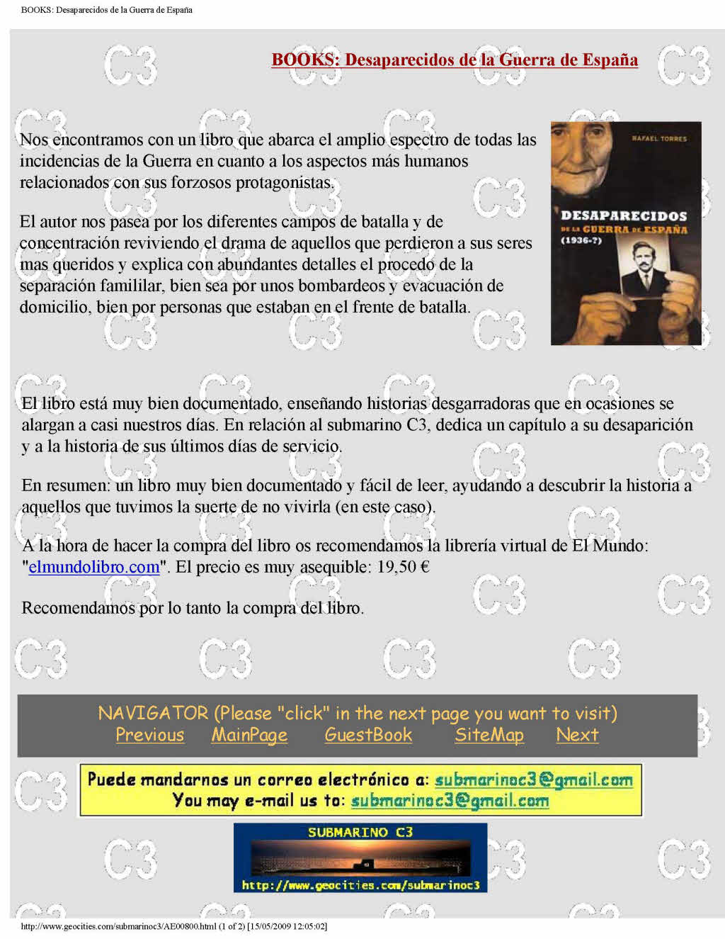 Otra Página del Submarino C3. Another Page dedicated to Submarine C3. Trascripción del artículo publicado en la REVISTA GENERAL DE MARINA de Junio de 1996 - Tomo 230