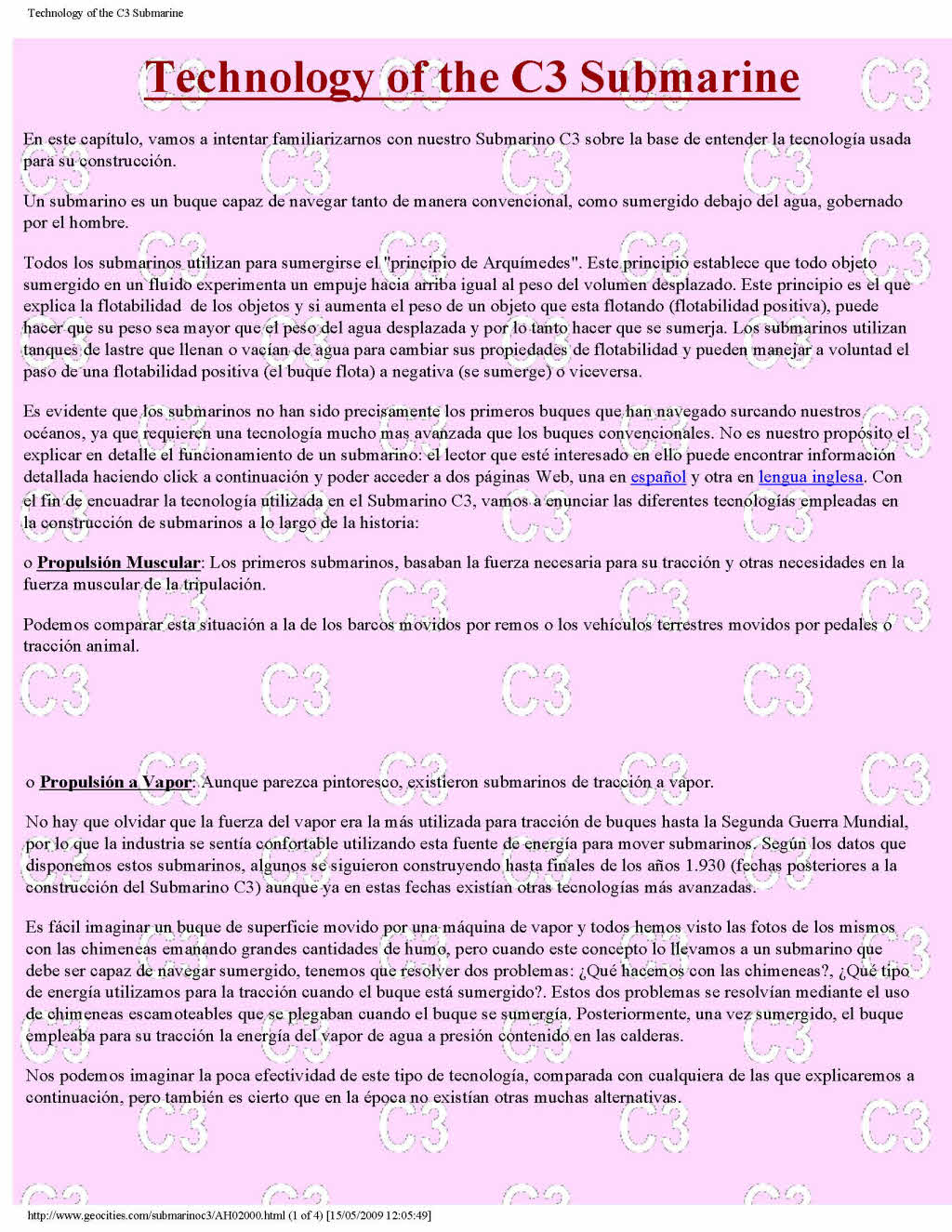 Otra Página del Submarino C3. Another Page dedicated to Submarine C3. Trascripción del artículo publicado en la REVISTA GENERAL DE MARINA de Junio de 1996 - Tomo 230