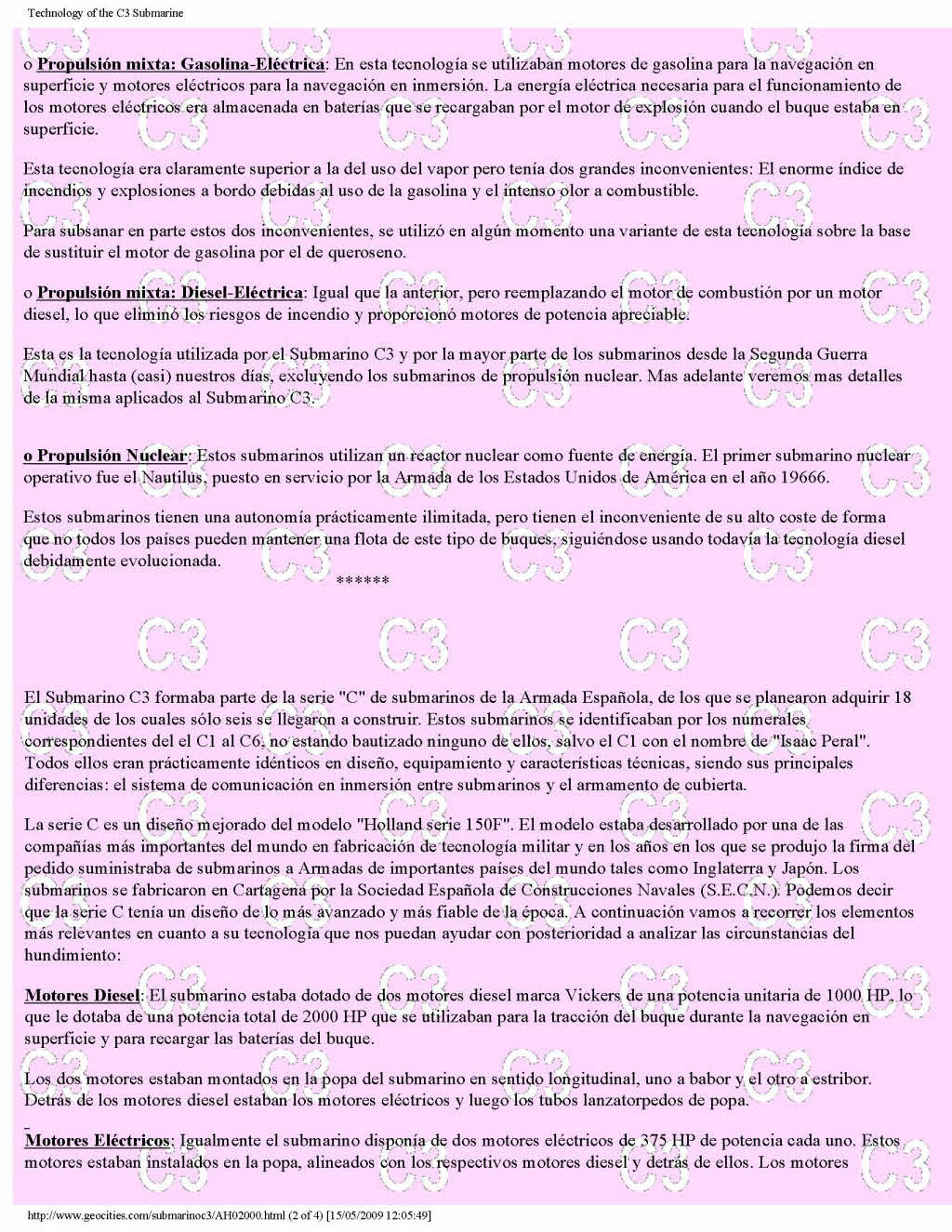 Otra Página del Submarino C3. Another Page dedicated to Submarine C3. Trascripción del artículo publicado en la REVISTA GENERAL DE MARINA de Junio de 1996 - Tomo 230