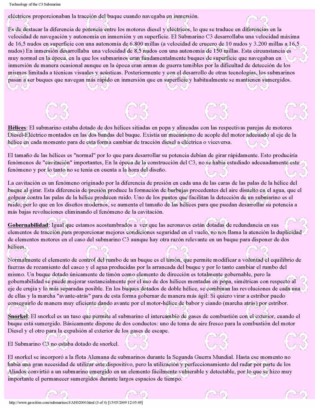 Otra Página del Submarino C3. Another Page dedicated to Submarine C3. Trascripción del artículo publicado en la REVISTA GENERAL DE MARINA de Junio de 1996 - Tomo 230