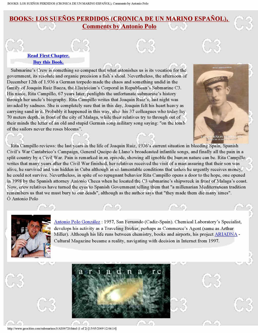 Otra Página del Submarino C3. Another Page dedicated to Submarine C3. Trascripción del artículo publicado en la REVISTA GENERAL DE MARINA de Junio de 1996 - Tomo 230
