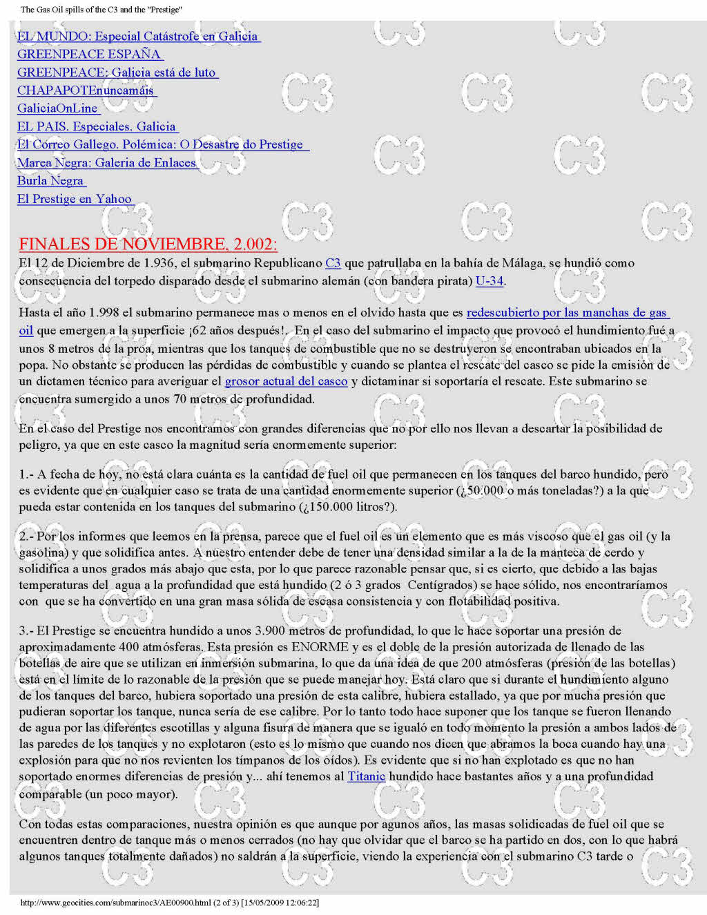 Otra Página del Submarino C3. Another Page dedicated to Submarine C3. Trascripción del artículo publicado en la REVISTA GENERAL DE MARINA de Junio de 1996 - Tomo 230